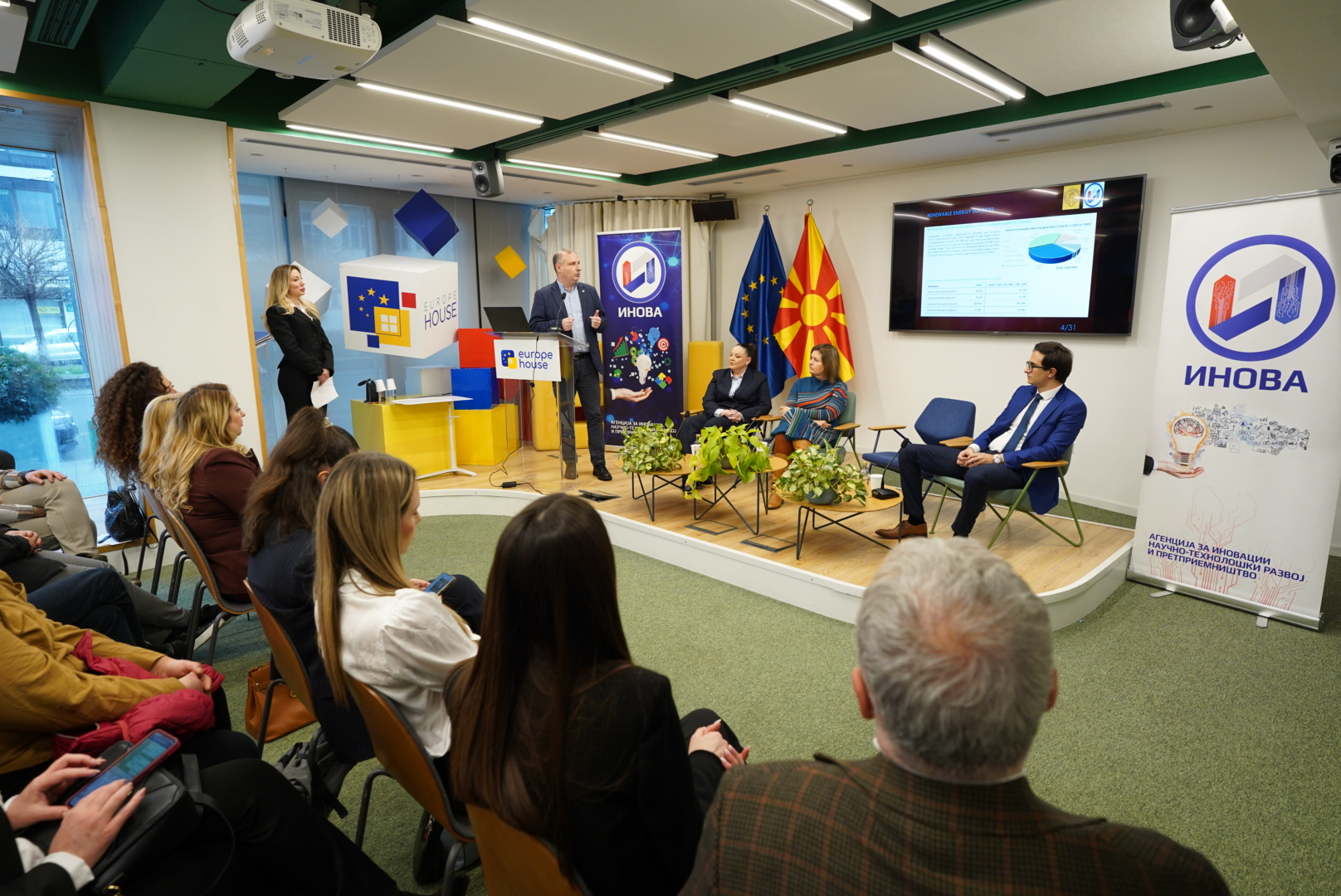 The event „Solar day–clean energy in practice “, held at Europe House, included also an educational session and a panel-discussion on the possibilities and the challenges of solar energy in Macedonia, with participation from representatives of institutions, the academic community, and companies from energy sector.