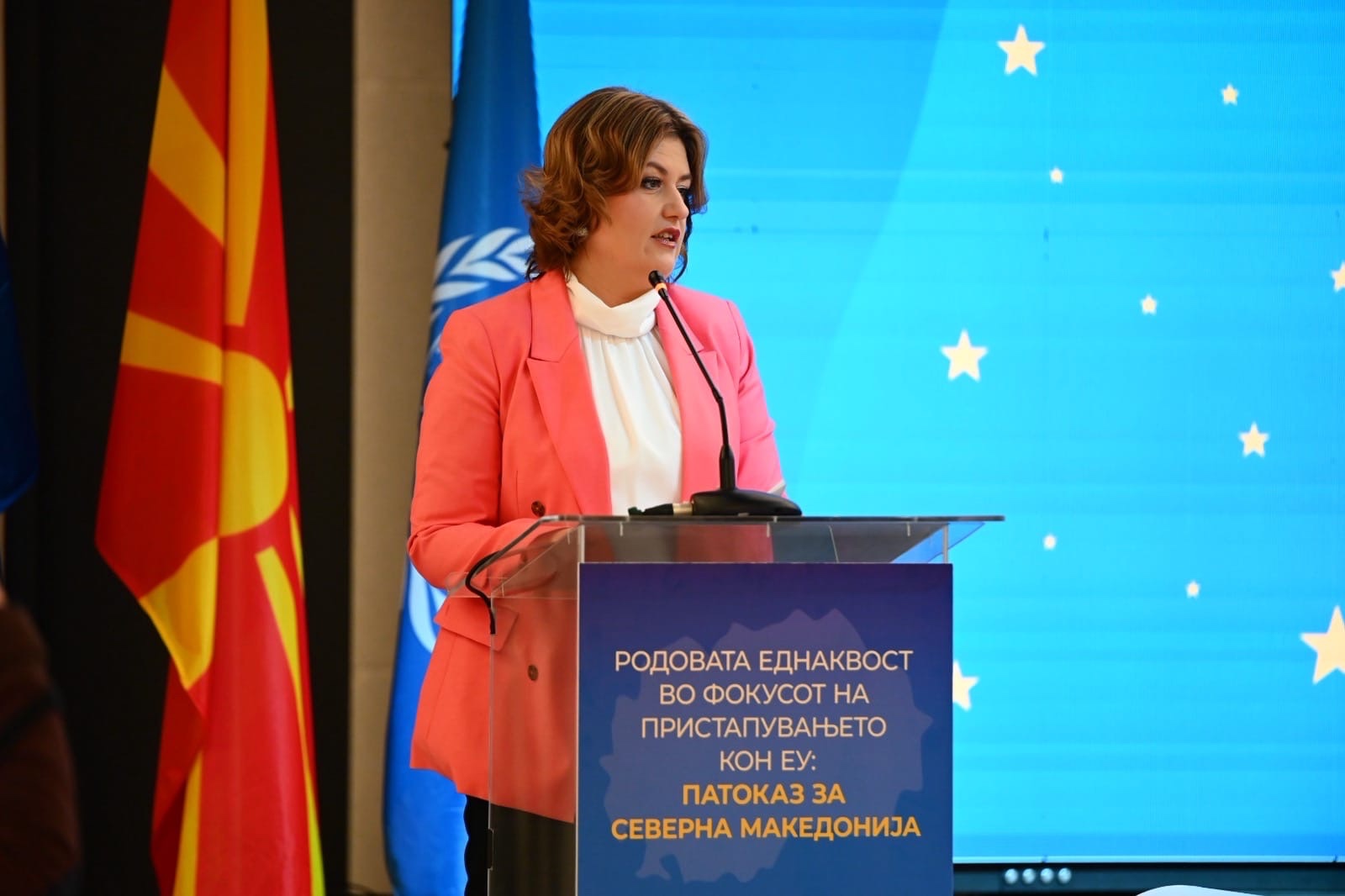 Министерката за енергетика, рударство и минерални суровини, Сања Божиновска, се обрати на конференцијата „Родовата еднаквост во фокусот на пристапувањето кон ЕУ: Патоказ за Северна Македонија“, одржана во Скопје во организација на Министерството за европски прашања и UN Women. Настанот обедини високи претставници на институциите, експерти и партнерски организации во заедничка цел – интегрирање на родовата еднаквост како централна компонента на европската интеграција.